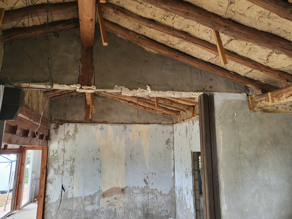 조금이라도 빨리 천정을 뜯어서 다행이지만 기둥이 없는 지붕은